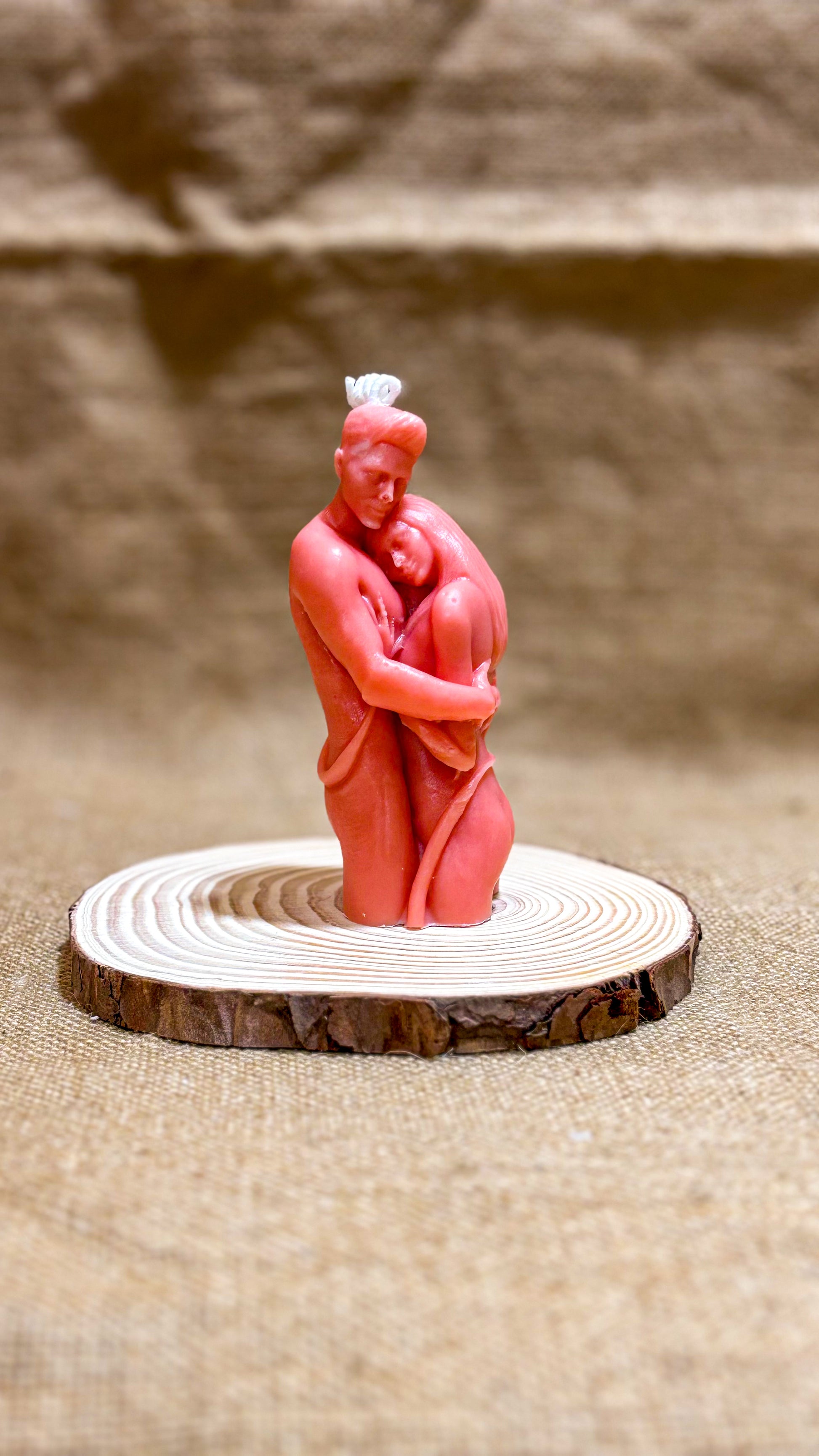 Abbraccio Eterno è una candela scultorea che rappresenta due corpi uniti in un gesto intimo e profondo, simbolo di legame, cura e presenza reciproca.