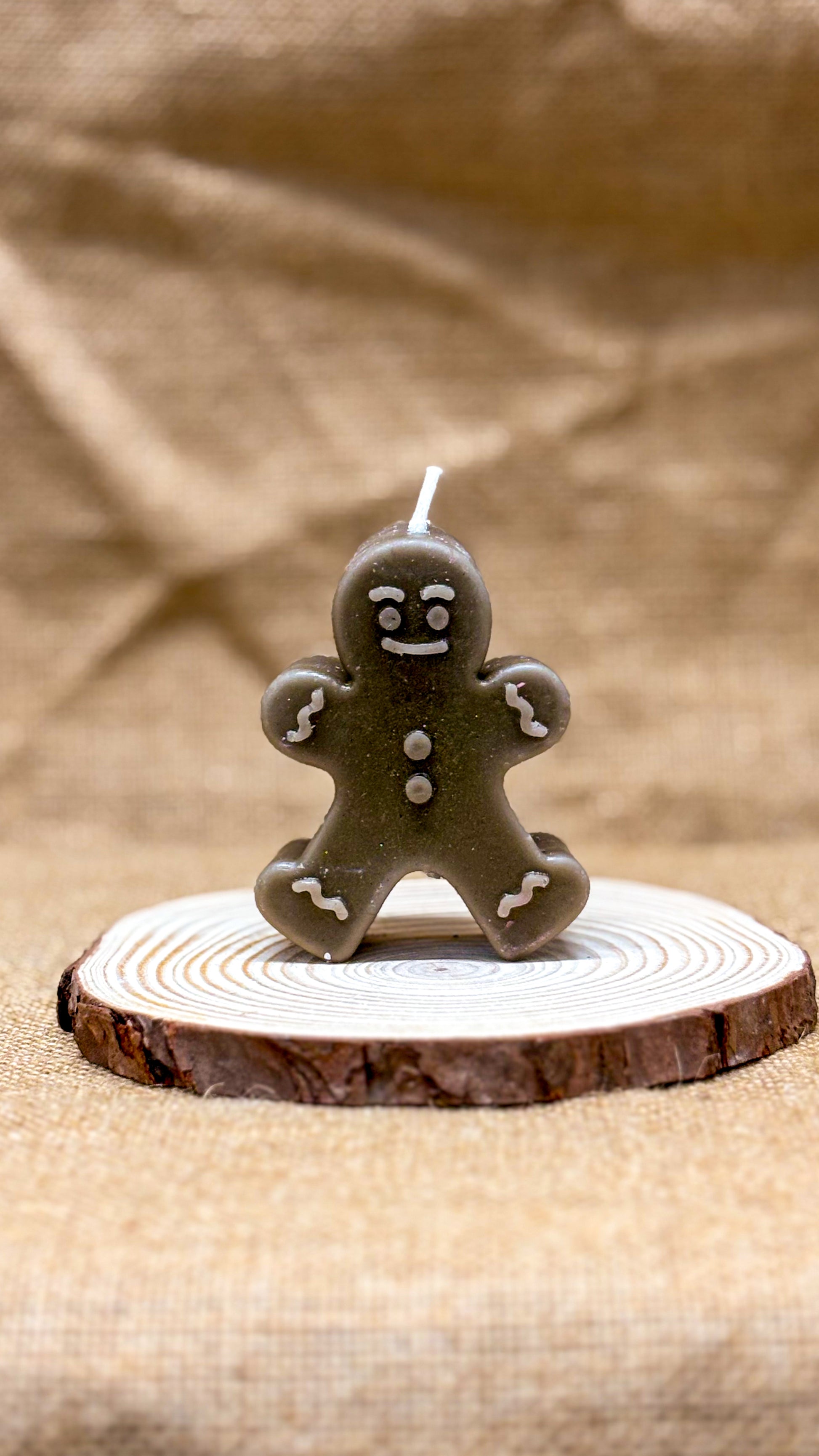 Dolce e simpatica, questa candela artigianale in cera naturale raffigura il classico omino di pan di zenzero, simbolo delle feste natalizie.