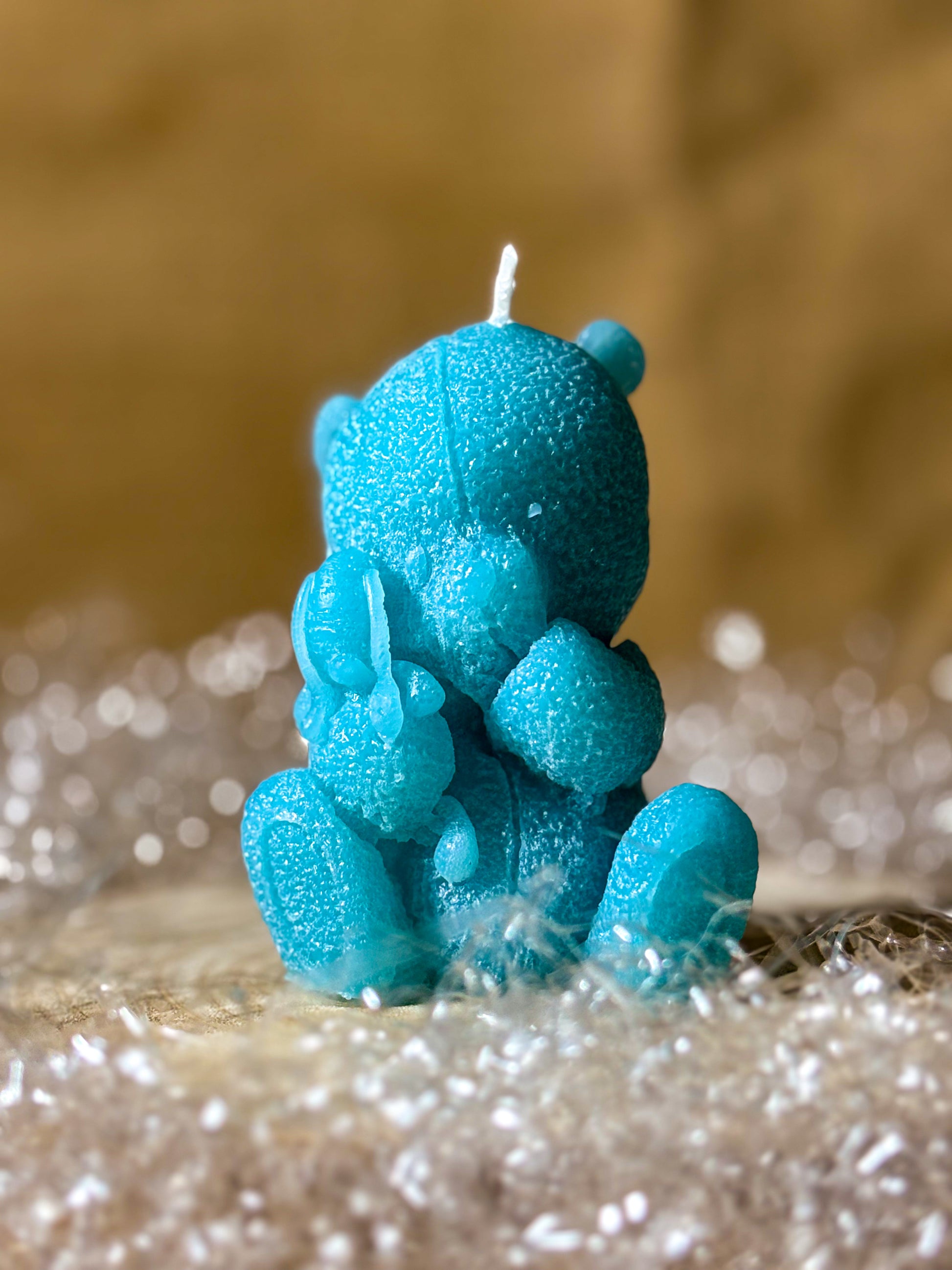 Un dolce orsetto che si copre la bocca con le sue zampette, simbolo di tenerezza e dolcezza. Questa candela è perfetta per aggiungere un tocco di affetto e calore a qualsiasi ambiente, ideale come regalo per una nascita, un baby shower o semplicemente per sorprendere qualcuno con un gesto speciale.
